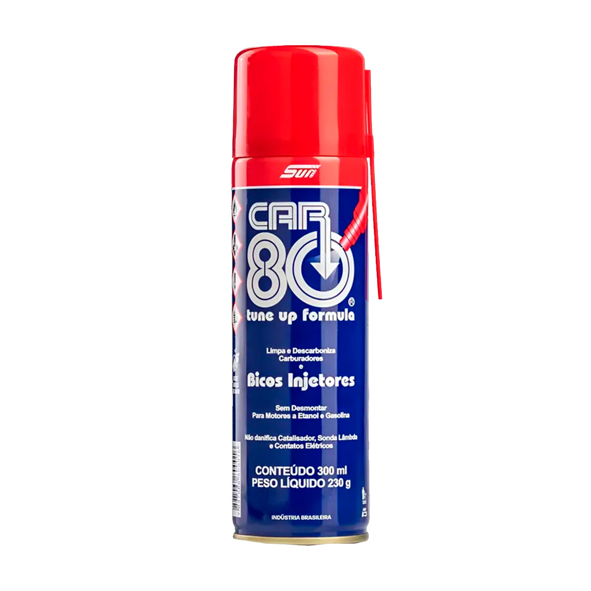 O Car80 Spray 300ml é o limpador potente e rápido para sistemas de alimentação de combustível, removendo depósitos de carbono, verniz, goma e resíduos acumulados em carburadores, bicos injetores, válvulas de admissão e corpo de borboleta. Sua fórmula em aerossol penetra profundamente nas peças, dissolvendo sujeira incrustada sem necessidade de desmontagem completa, restaurando a pulverização ideal do combustível e melhorando a resposta do motor em acelerações e partidas a frio. Ideal para manutenção preventiva em veículos a gasolina, flex ou carburados antigos que apresentam falhas na marcha lenta, consumo elevado ou perda de potência.