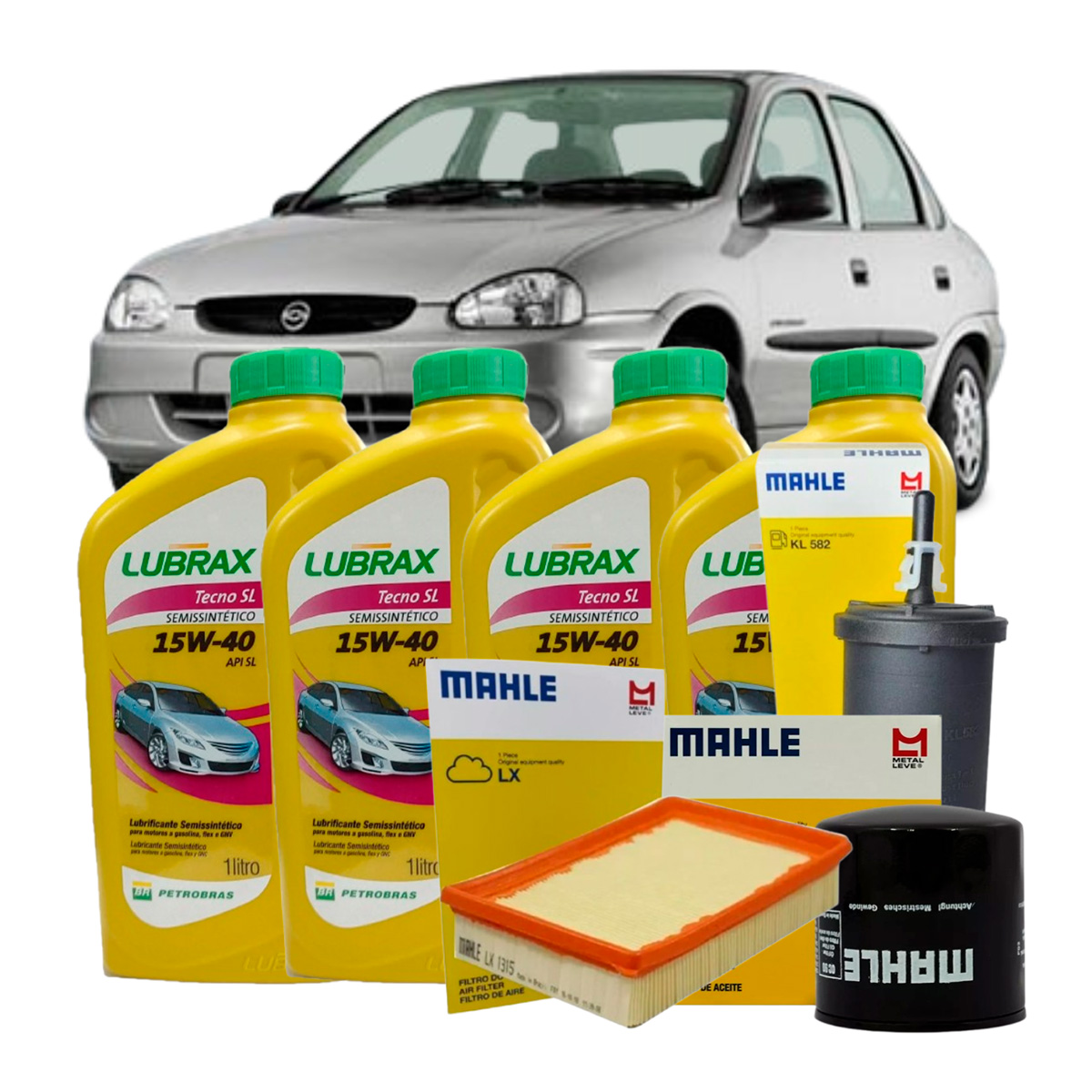 O Kit Troca de Óleo 15W40 Corsa Classic 2004 a 2008 foi desenvolvido para oferecer manutenção completa, proteção eficiente e maior durabilidade ao motor. O conjunto inclui 4 litros de óleo Lubrax 15W40, filtro de óleo Mahle OC90, filtro de combustível Mahle KL582, filtro de ar Mahle LX1315 e etiqueta de troca, garantindo uma revisão completa com produtos de marcas reconhecidas pela qualidade e confiabilidade no mercado automotivo, todos acompanhados de nota fiscal.